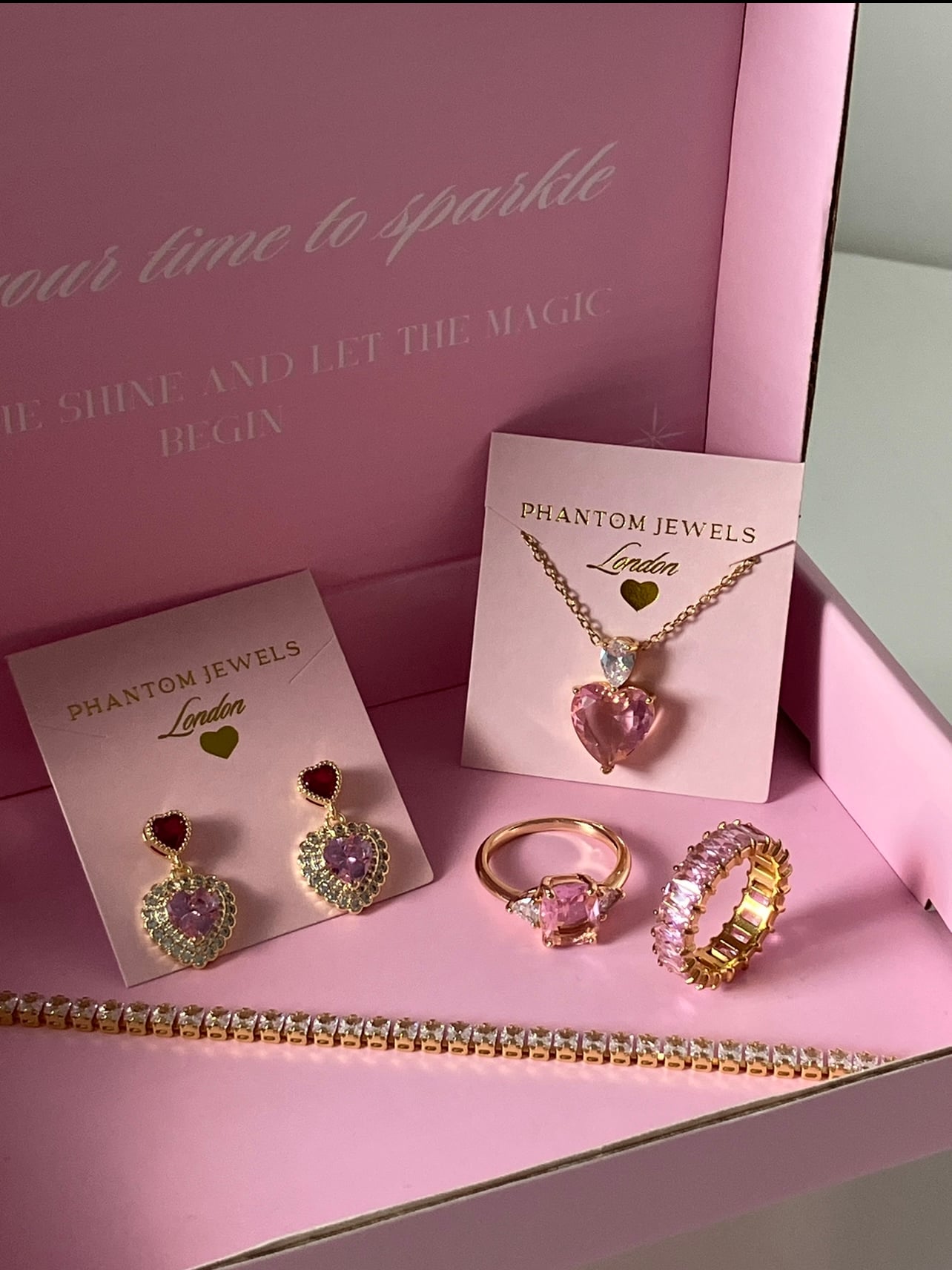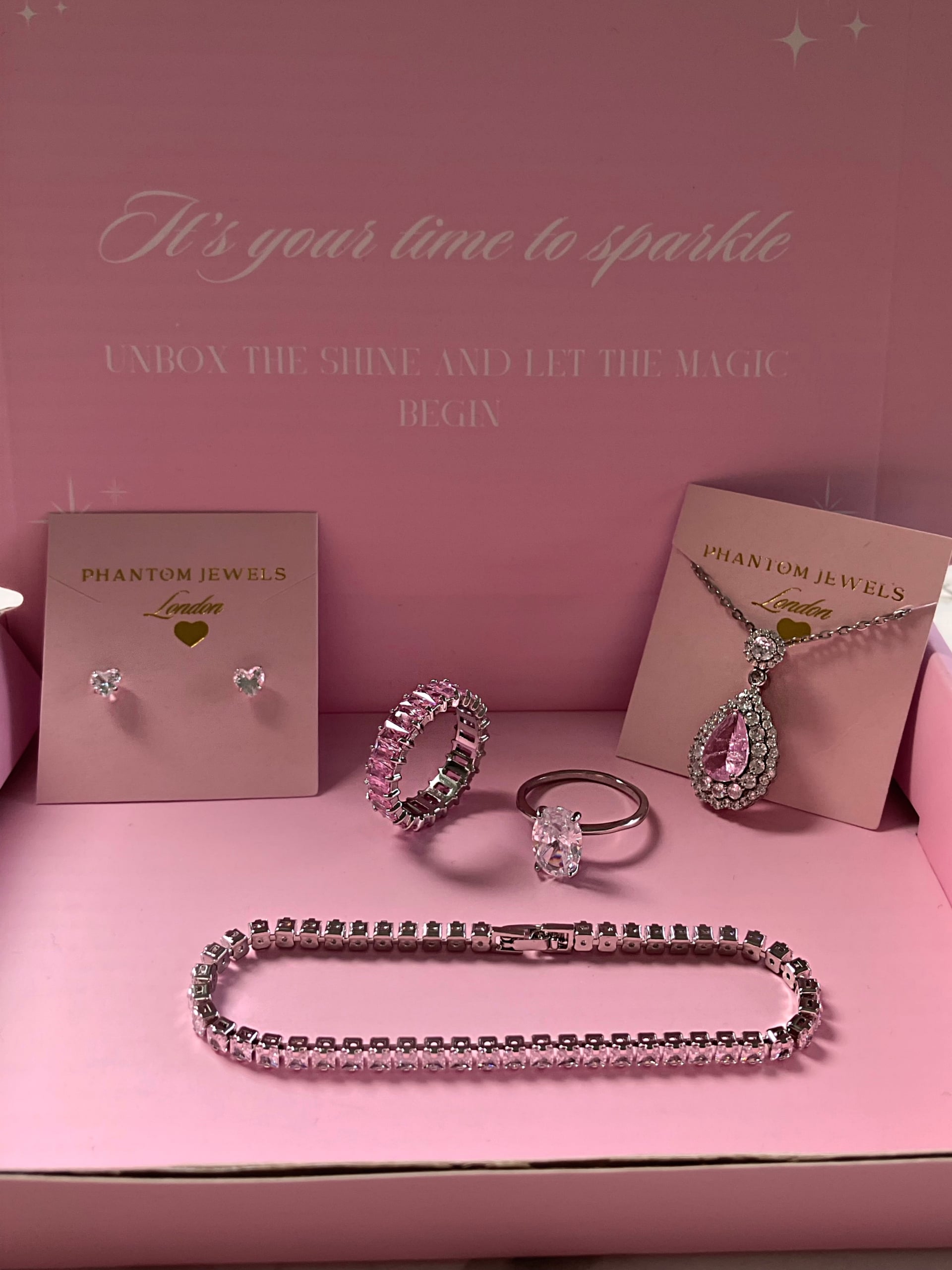 it’s really pretty, never bought something where i don’t know what im going to get and i know all bundles are different im not usually a fan of eternity bands bu this is pretty cause it’s pink and ill probably gift the earrings to a friend who likes hearts so its useful for gifting and keeping some for yourself!