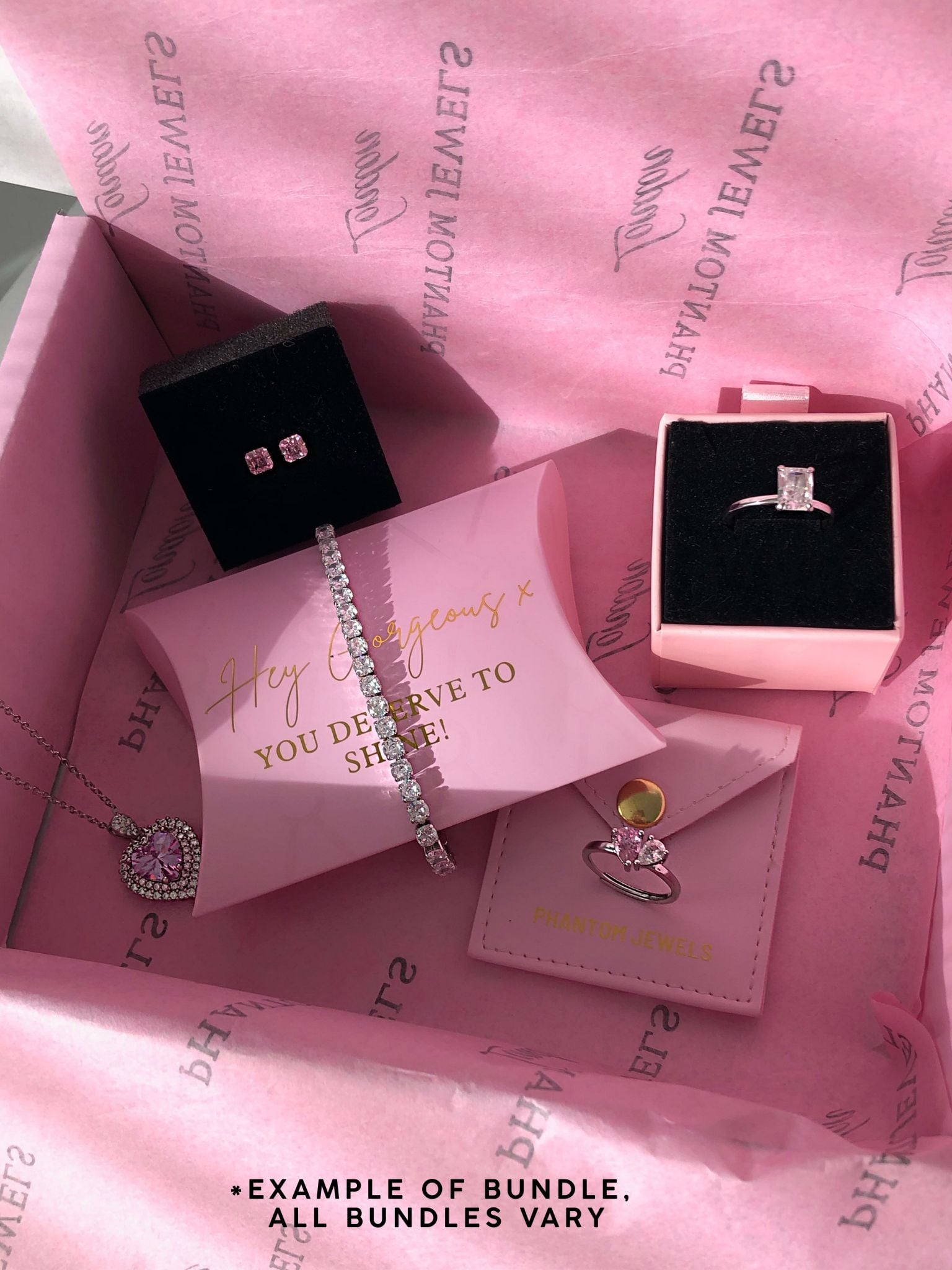 I know it’s a surprise bundle but I thought it would be out of the pictures shown above but you get anything out of all items in shop. I still like mine I have cute items given to me as a surprise seems like a gift I would take it; although I was expecting a big tennis chain bracelet with tennis pink hearted necklace oh well I still love the things I’ve got. I’m grateful and I would certainly recommend it 👍🏼 .. it won’t let me upload pictures for some reason🙈😣