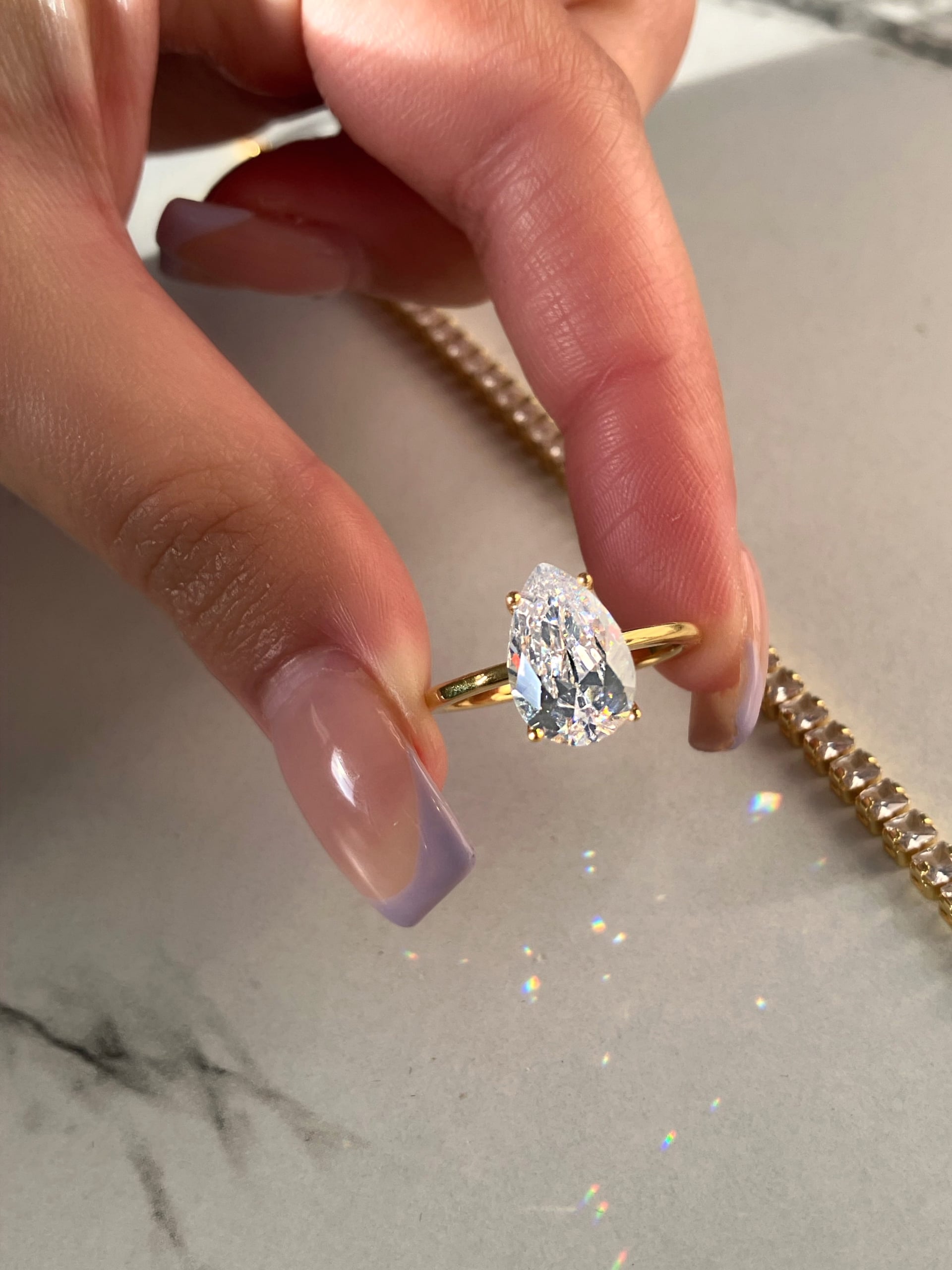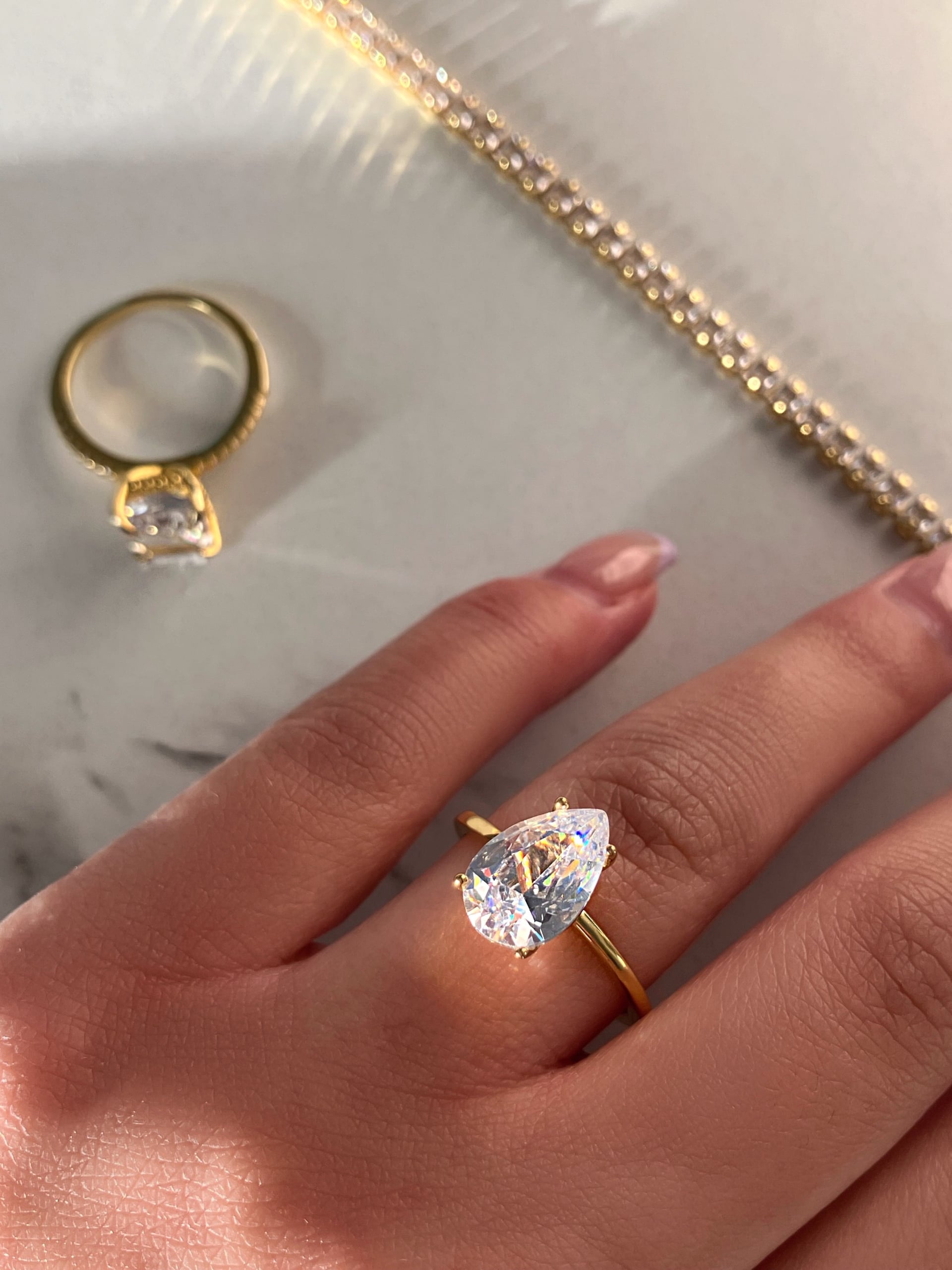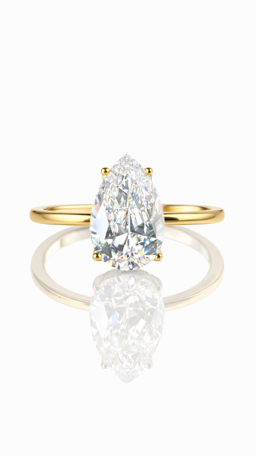 The 8A Gold Lobby Pear Cut Solitaire Ring creates a sophisticated silhouette that feels effortlessly high-end. Perfect as a meaningful engagement ring — or as a refined travel piece when you want the beauty without the worry.